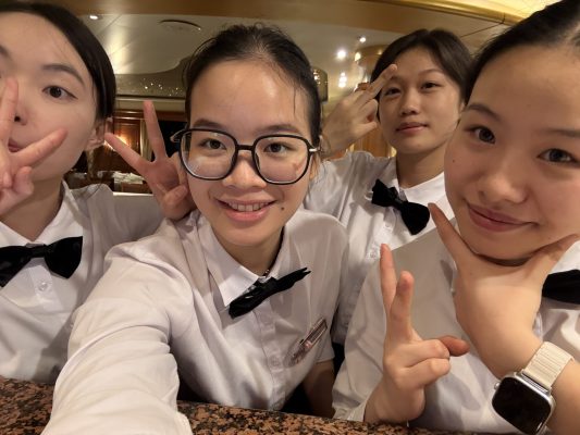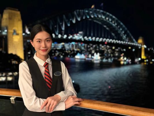 2014 年至 2022 年,广西华海教育发展有限公司与广西民族大学继续教育学院联合办学“国际乘务班”,并已办学 7 届,共培养及输送 600 余名学生到国际邮轮相关岗位工作,具有极其丰富的国际邮轮乘务培训经验和就业渠道。培养国际邮轮乘务学生走向世界各地,欧洲、美洲、东南亚、澳洲,甚至南极和北极都有学生们的足。他们在美国皇家加勒比邮轮、意大利歌诗达邮轮、新加坡丽星邮轮、美国公主邮轮、NCL 诺唯真邮轮、MSC 地中海邮轮、爱达邮轮等国际邮轮上工作、成长和发展,扩展了视野,提高了外语水平与交际能力,开拓了人脉,大大助力学生们的未来职业发展。