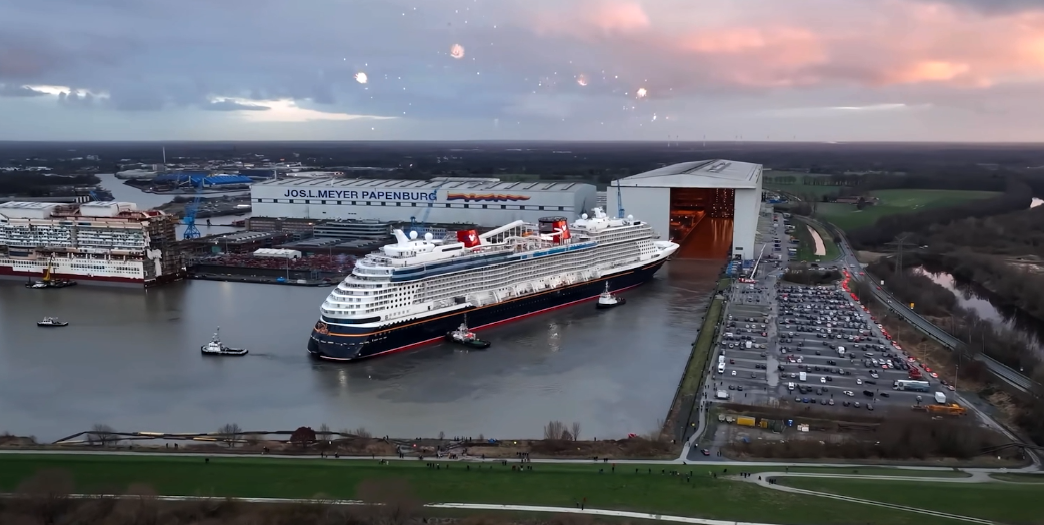 “迪士尼愿望号”在2022年德国帕彭堡迈尔船厂完成下水仪式,现场燃放烟花庆祝。该船长341米,宽41米,总排水 […]