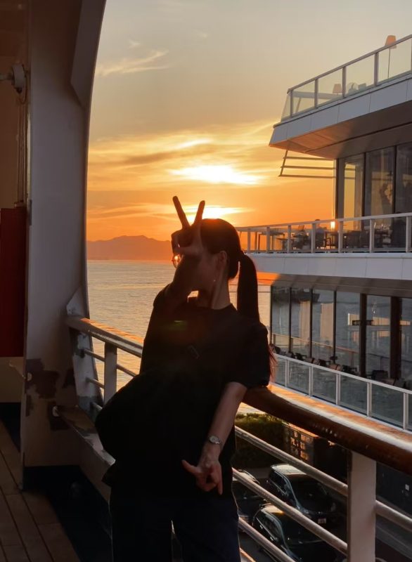 邮轮甲板看夕阳